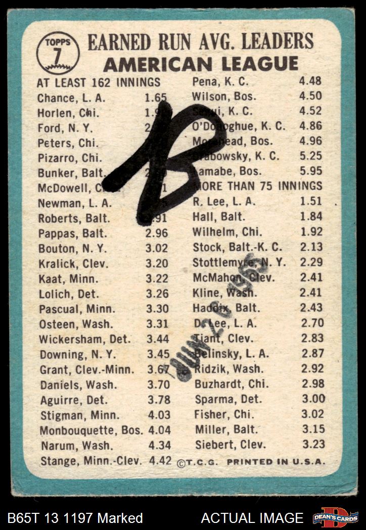 1965 Topps #7 - Dean Chance / Joel Horlen AL ERA Leaders 1.5 - FAIR