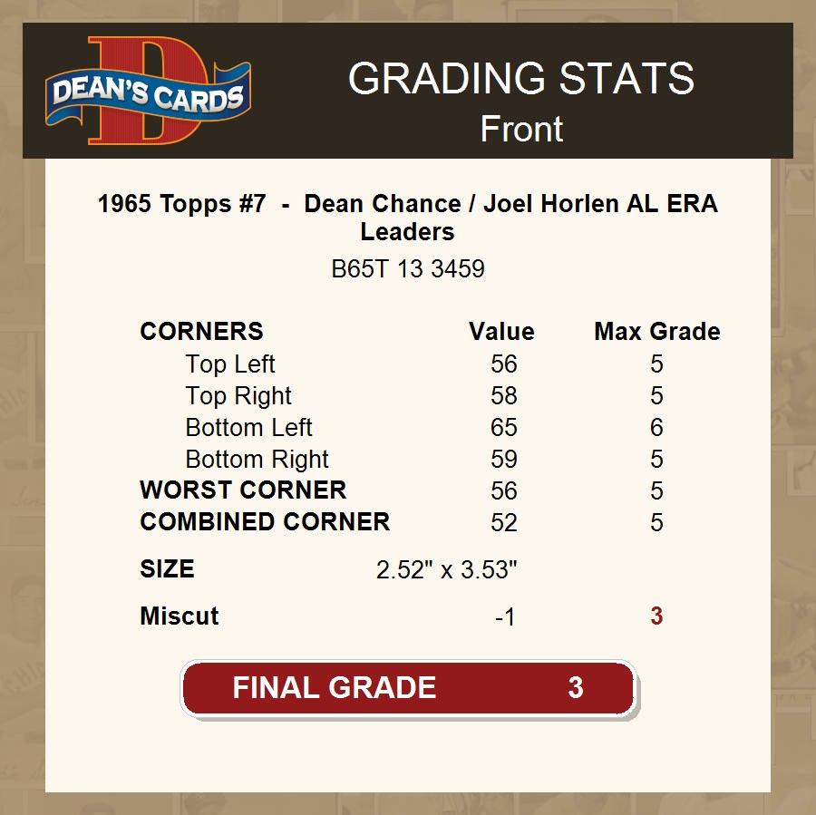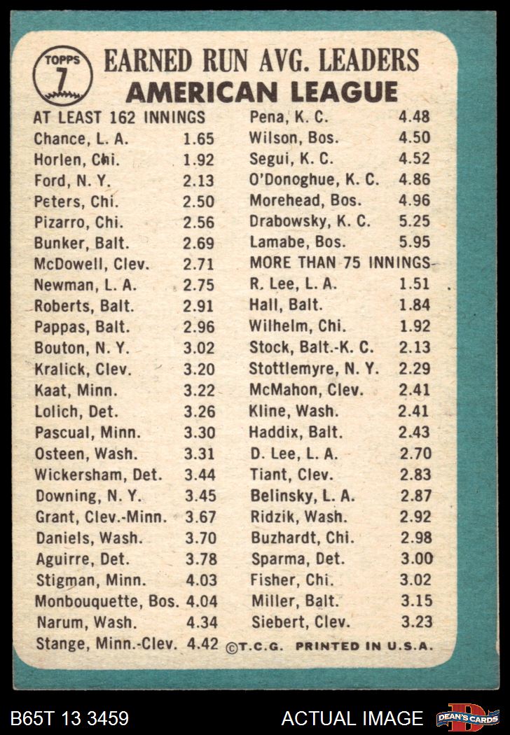 1965 Topps #7 - Dean Chance / Joel Horlen AL ERA Leaders 3 - VG