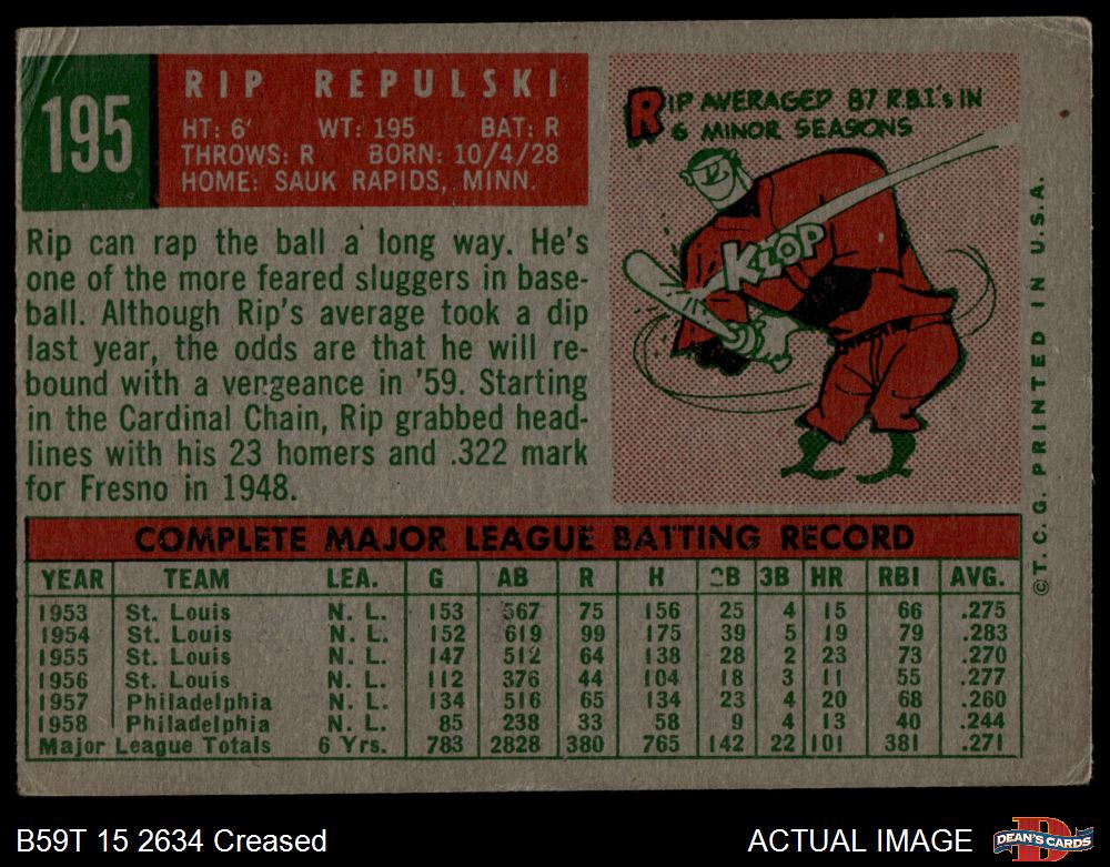 1959 Topps #195 Rip Repulski 2 - GOOD