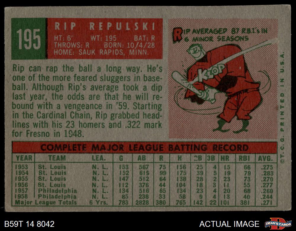 1959 Topps #195 Rip Repulski 4 - VG/EX