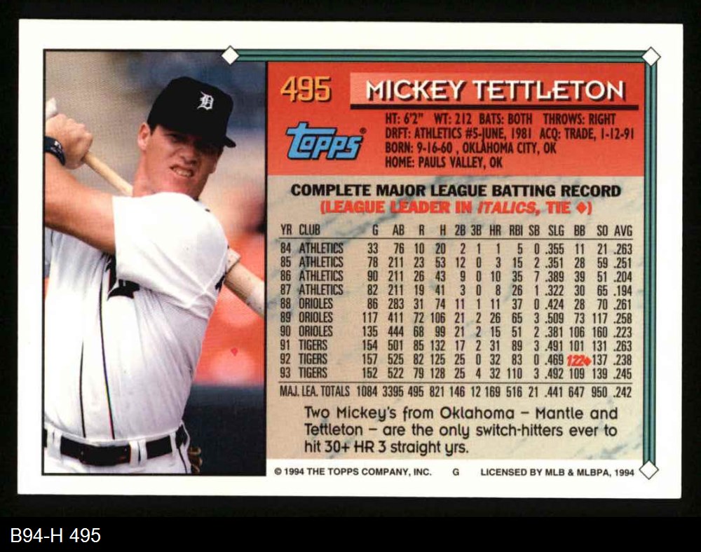 1994 Topps #495 Mickey Tettleton 8 - NM/MT
