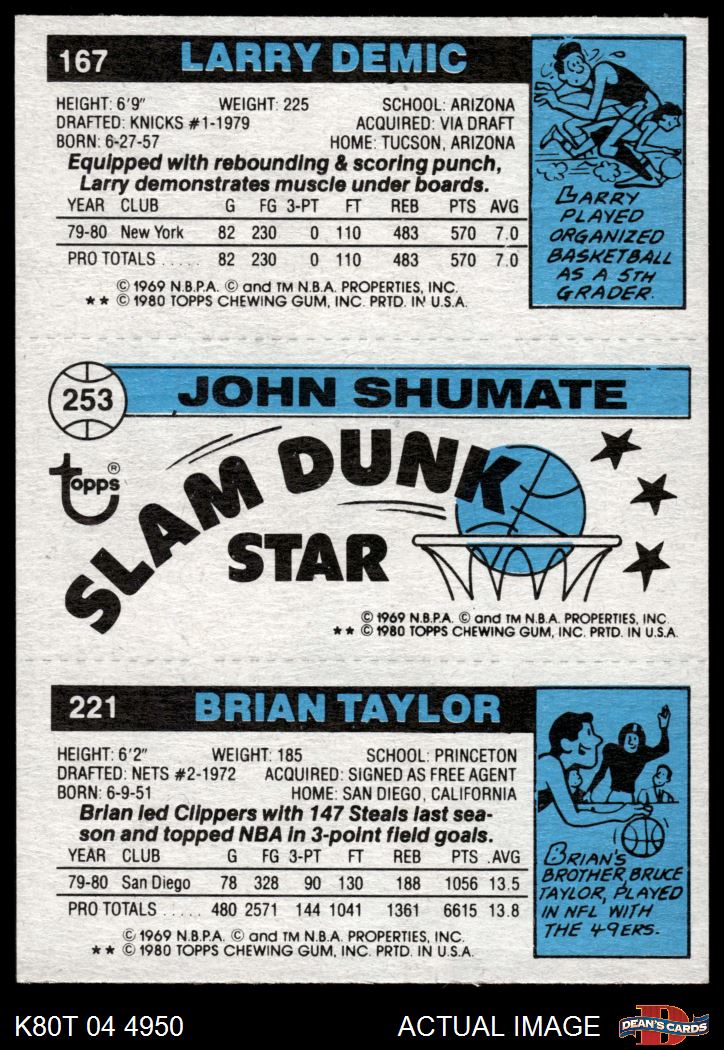 1980 Topps - Brian Taylor / John Shumate / Larry Demic 221 / 253 / 167 7 - NM