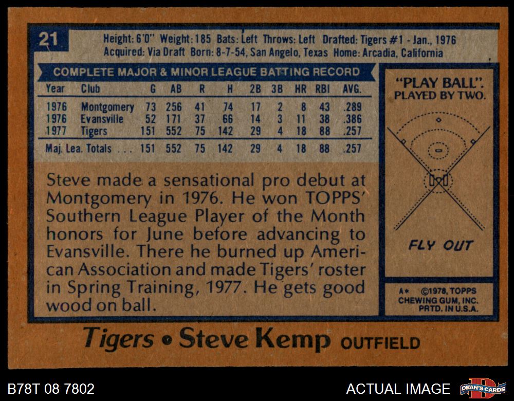 1978 Topps #21 Steve Kemp 7 - NM