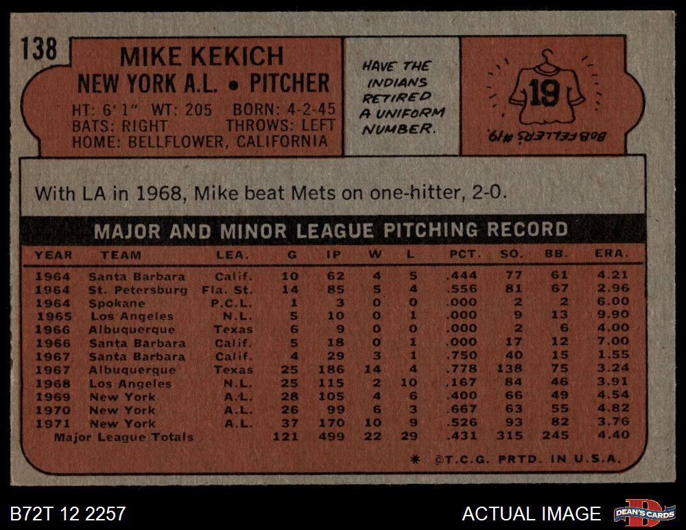 1972 Topps #138 Mike Kekich