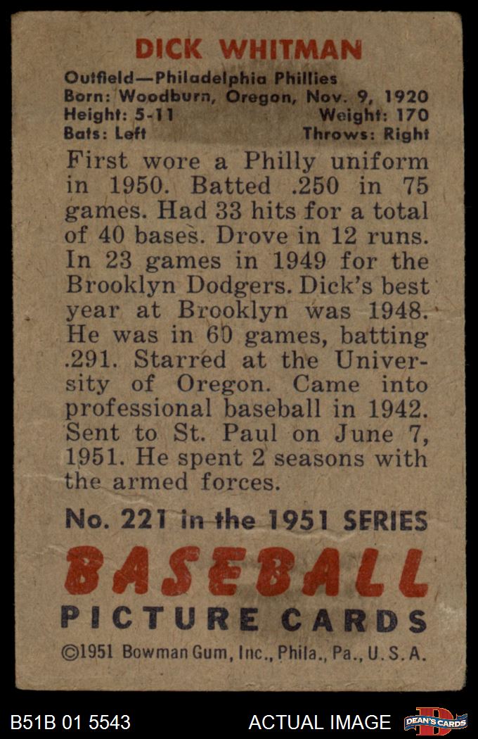 1951 Bowman Baseball Cards (1,842 available)1951 Bowman Phillies (214 available)