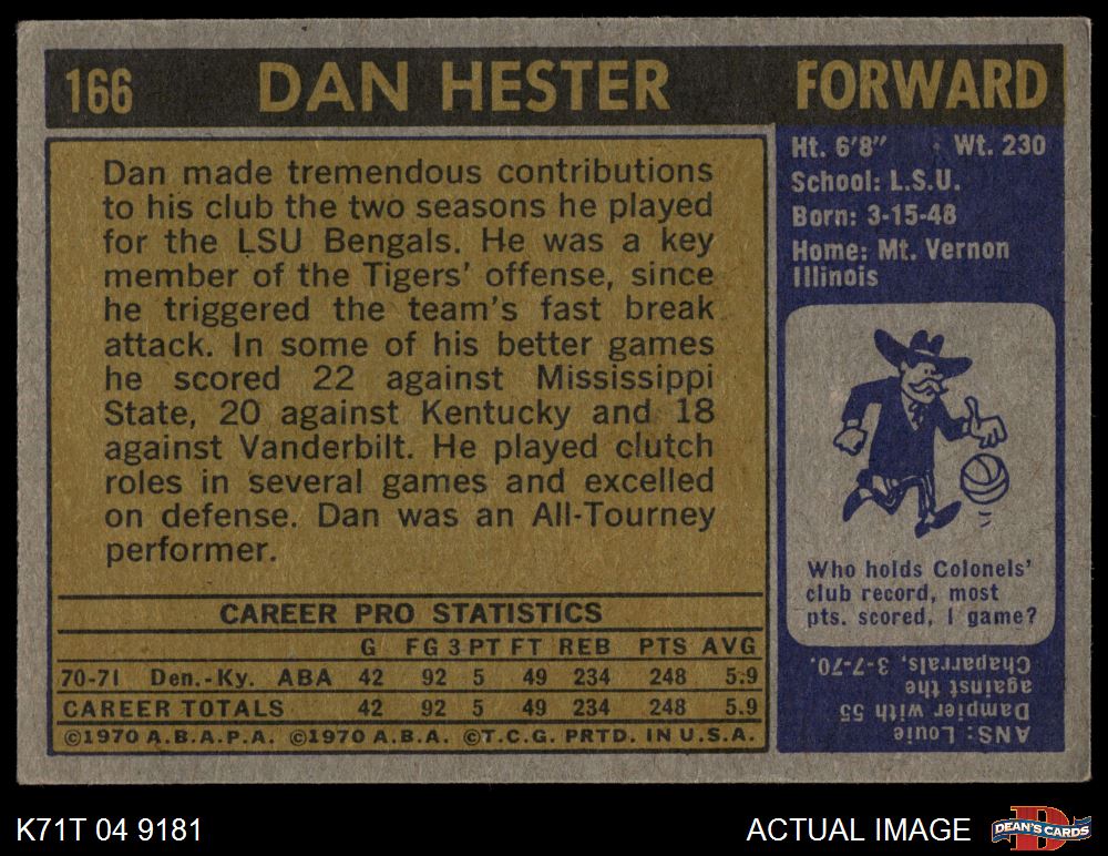 1971 Topps #166 Dan Hester 2 - GOOD
