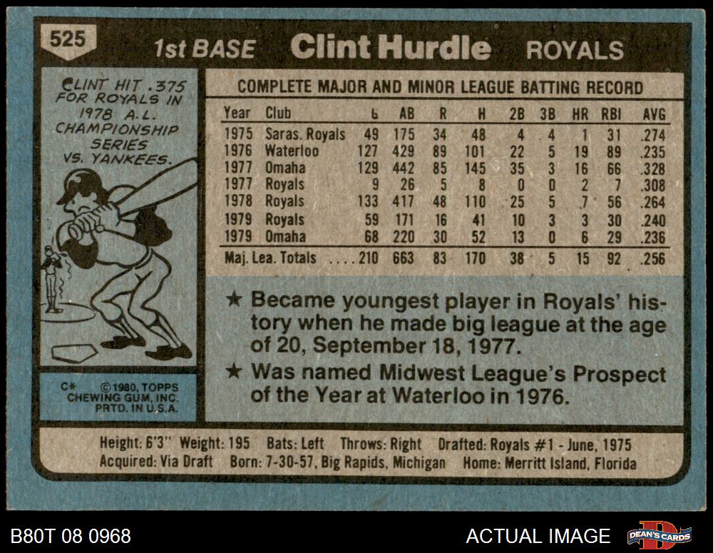 1980 Topps #525 Clint Hurdle 6 - EX/MT