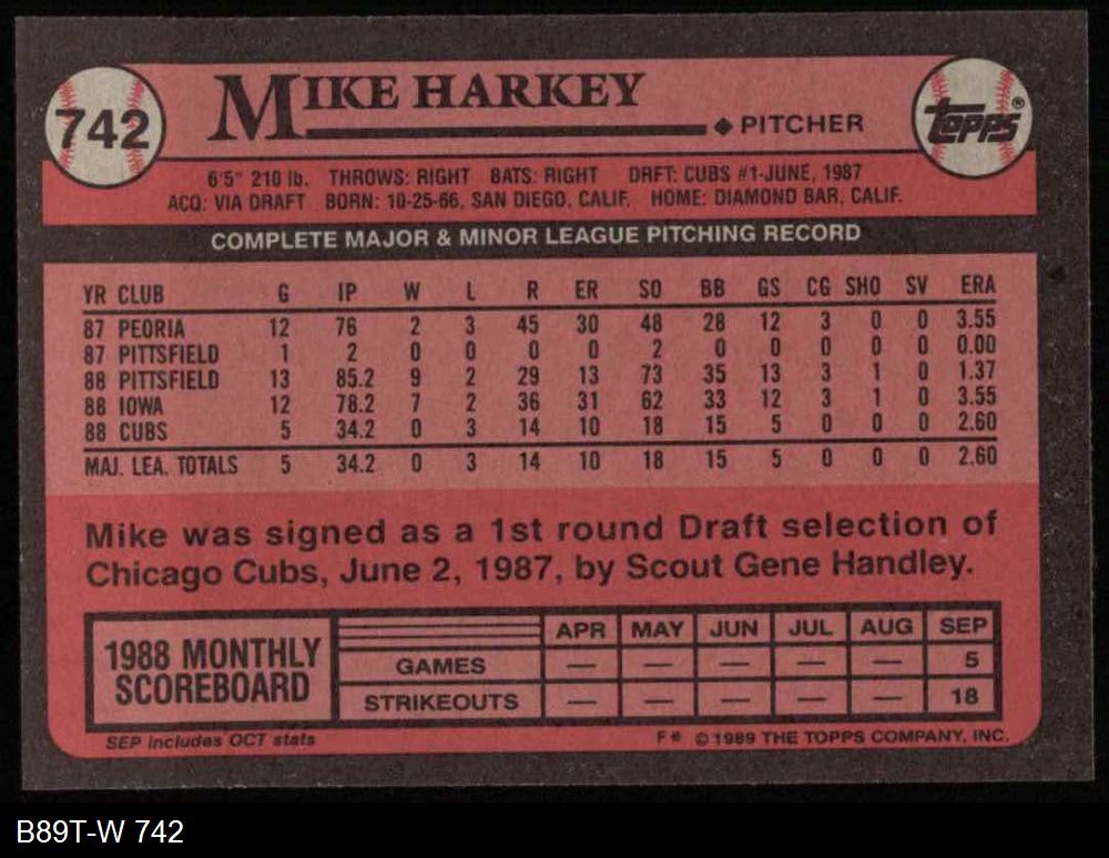 1989 Topps #742 Mike Harkey