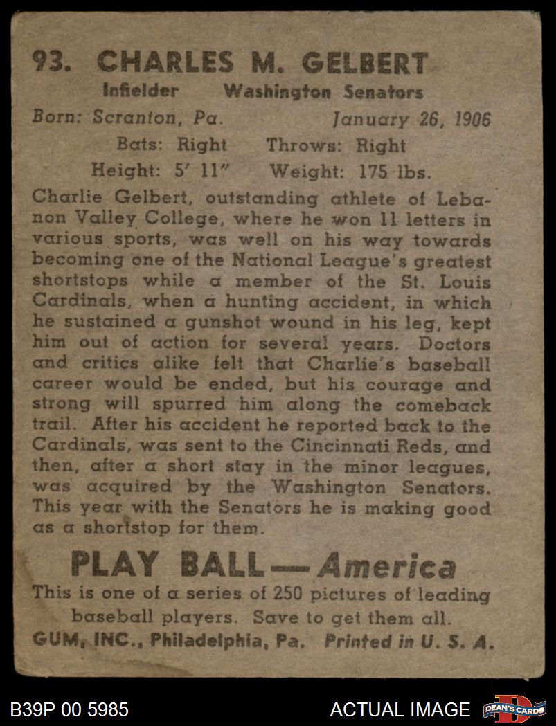 1939 Play Ball #93 Charley Gelbert 3 - VG