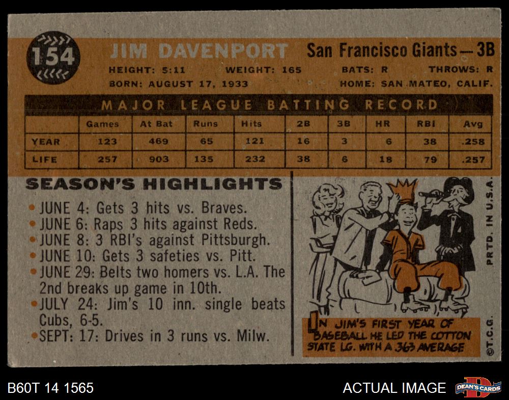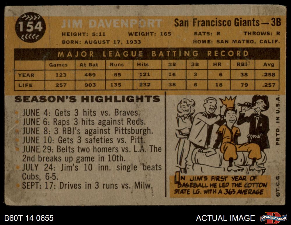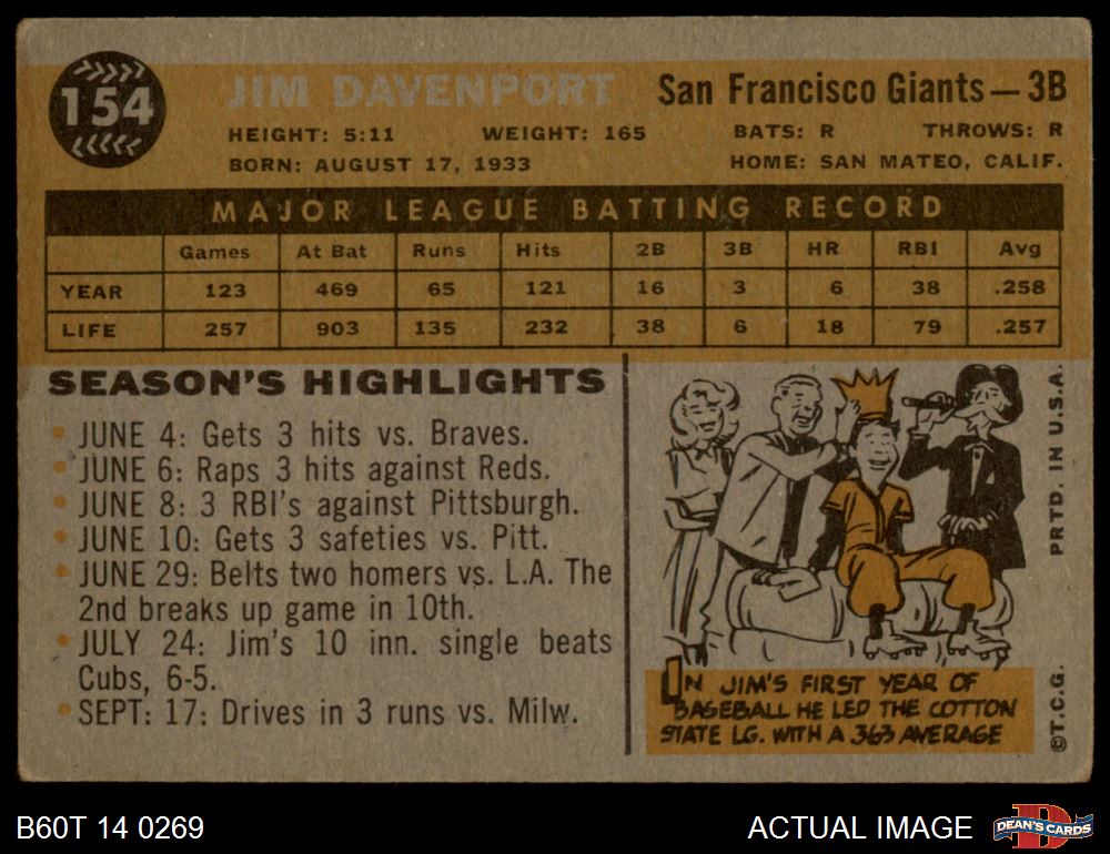 1960 Topps #154 Jim Davenport 1.5 - FAIR