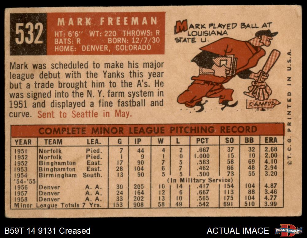 1959 Topps #532 Mark Freeman Front Thumbnail
