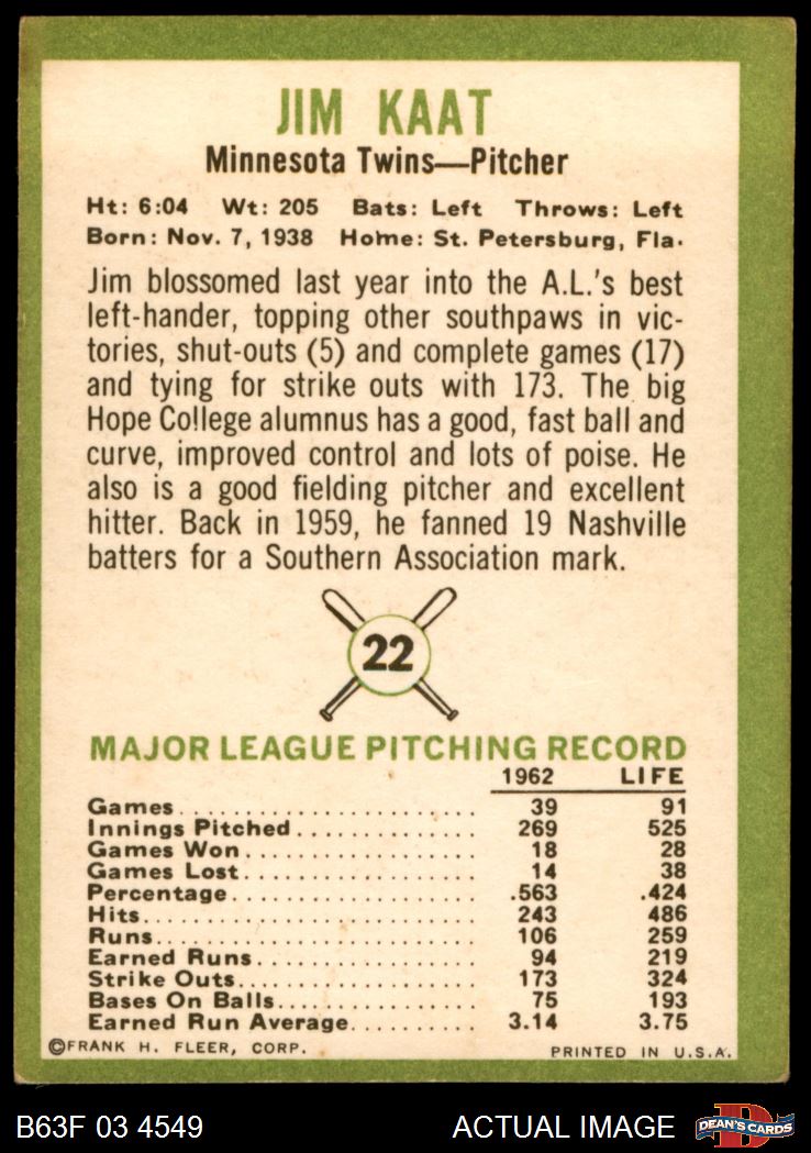 1963 Fleer #22 Jim Kaat 2 - GOOD