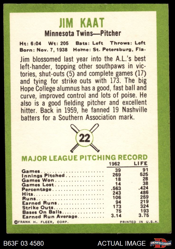 1963 Fleer #22 Jim Kaat 4 - VG/EX