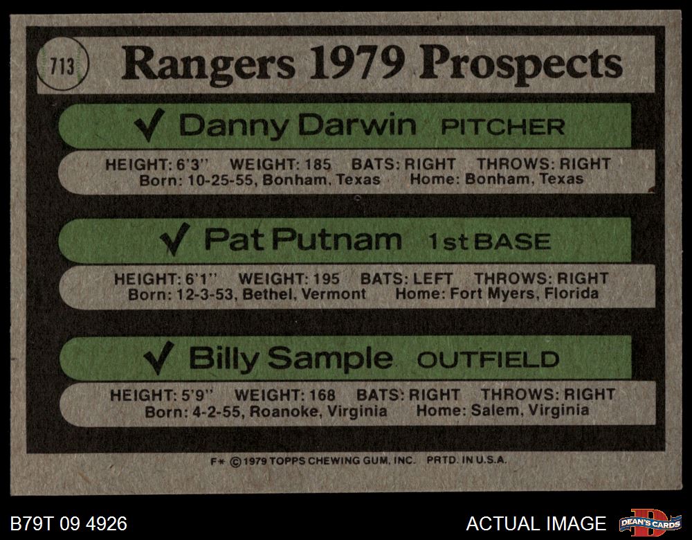1979 Topps #713 Rangers Prospects