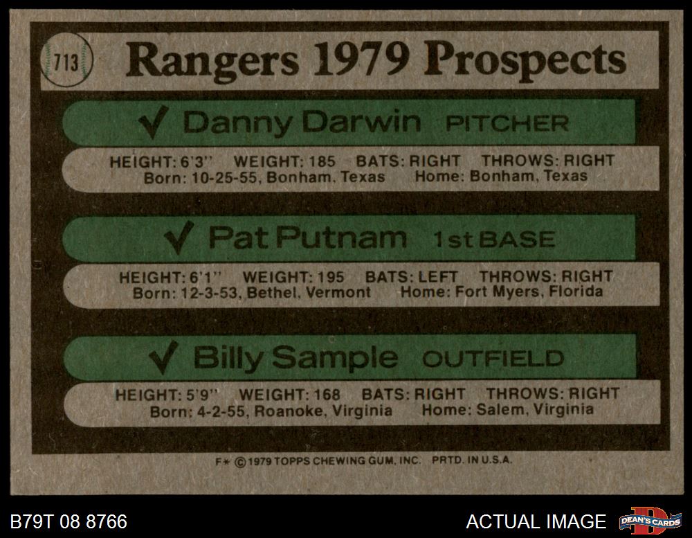 1979 Topps #713 - Danny Darwin / Pat Putnam / Billy Sample Rangers Prospects 6 - EX/MT