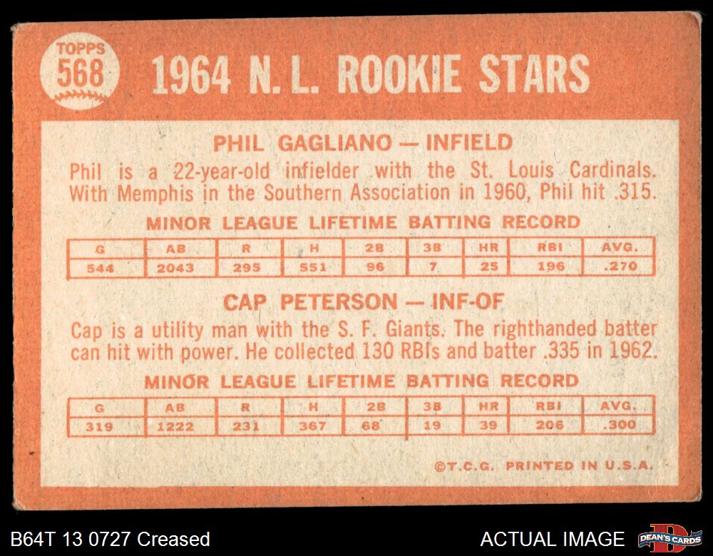 1964 Topps #568 - Phil Gagliano / Cap Peterson NL Rookies 2 - GOOD
