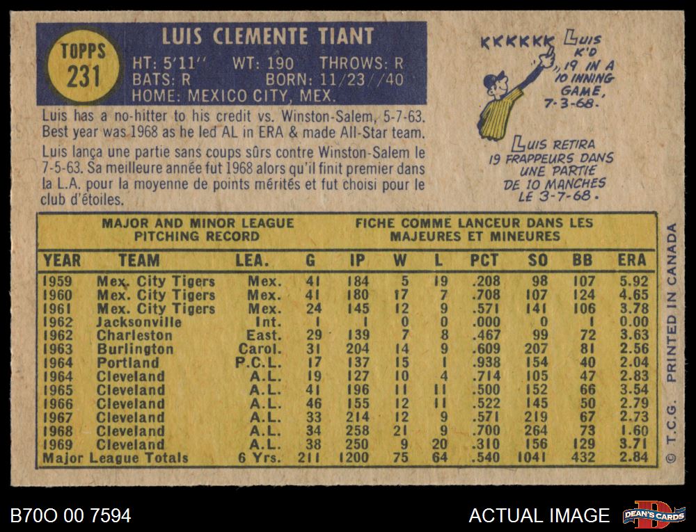 1970 O-Pee-Chee #231 Luis Tiant 5 - EX