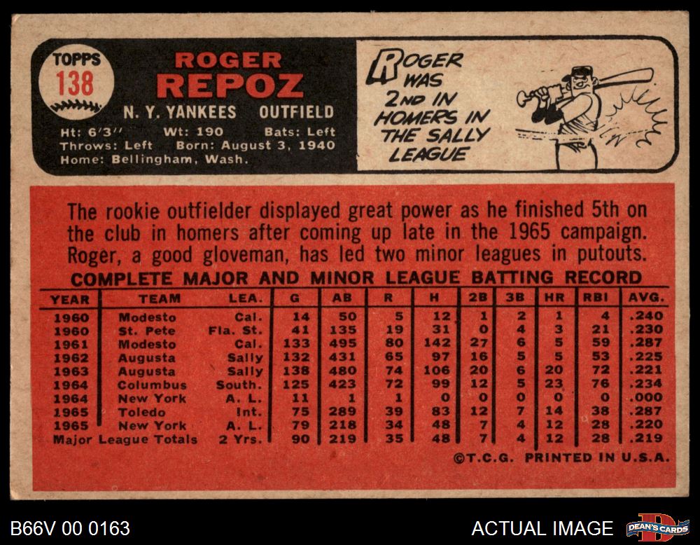 1966 Topps Venezuelan #138 Roger Repoz 5 - EX