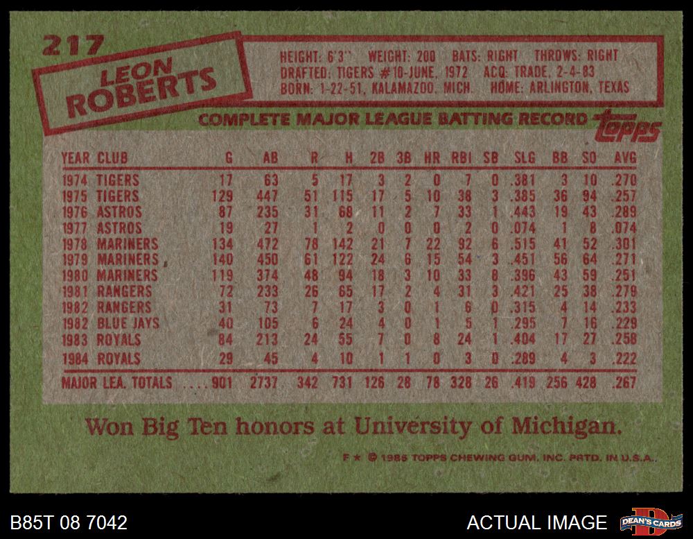 1985 Topps #217 Leon Roberts