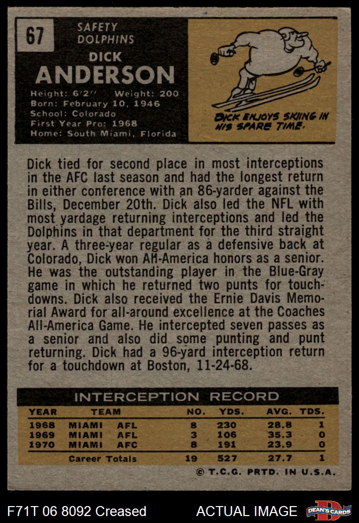 1971 Topps #67 Dick Anderson Front Thumbnail