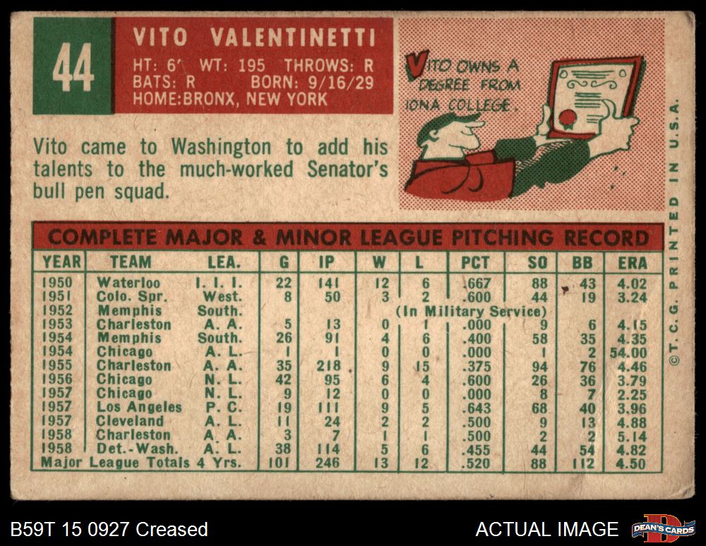 1959 Topps #44 Vito Valentinetti 1.5 - FAIR