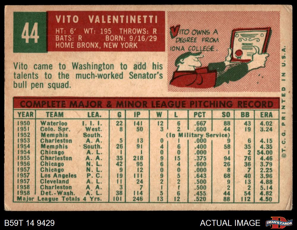 1959 Topps #44 Vito Valentinetti