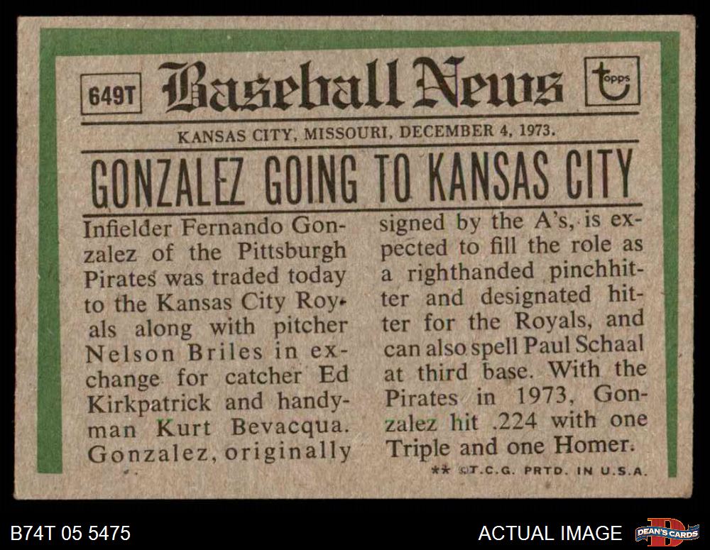 1974 Topps #649 T  -  Fernando Gonzalez Traded Front Thumbnail