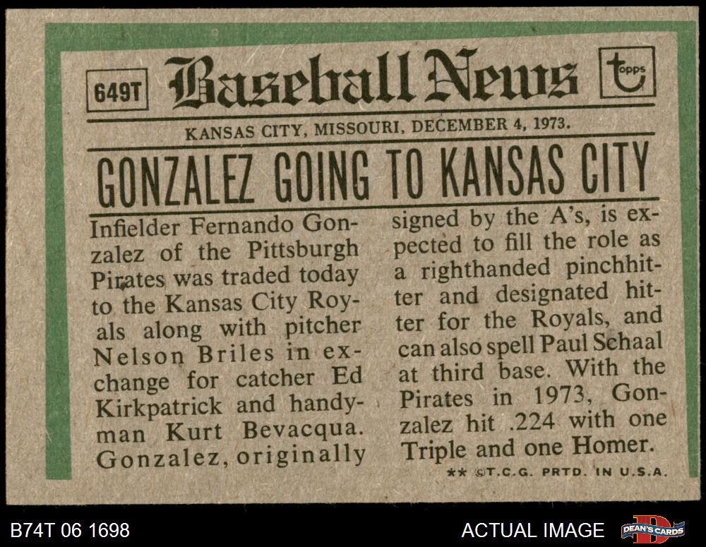 1974 Topps #649 T - Fernando Gonzalez Traded 4 - VG/EX
