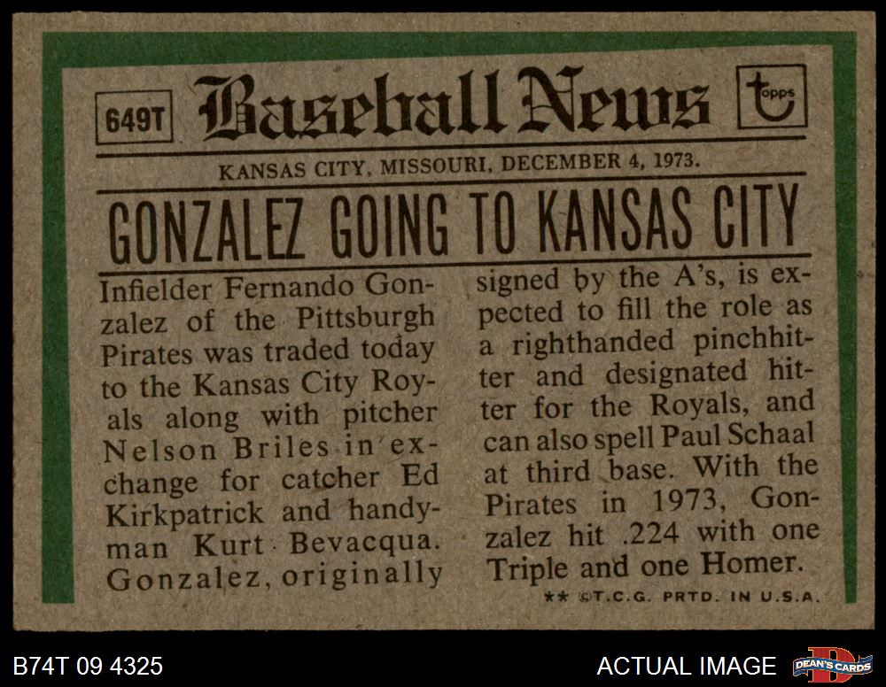 1974 Topps #649 T - Fernando Gonzalez Traded 5 - EX
