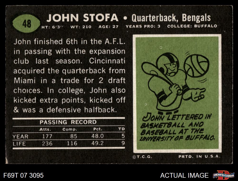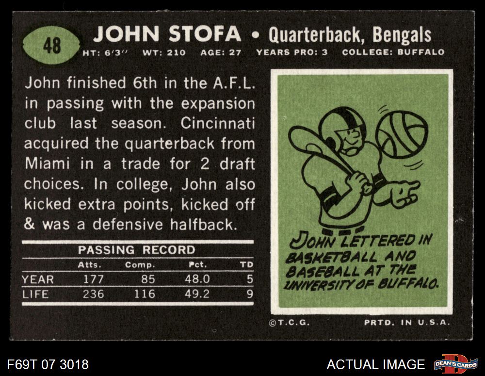 1969 Topps #48 John Stofa 5 - EX