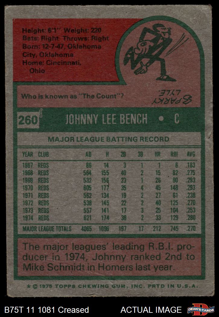 1975 Topps #260 Johnny Bench 2 - GOOD
