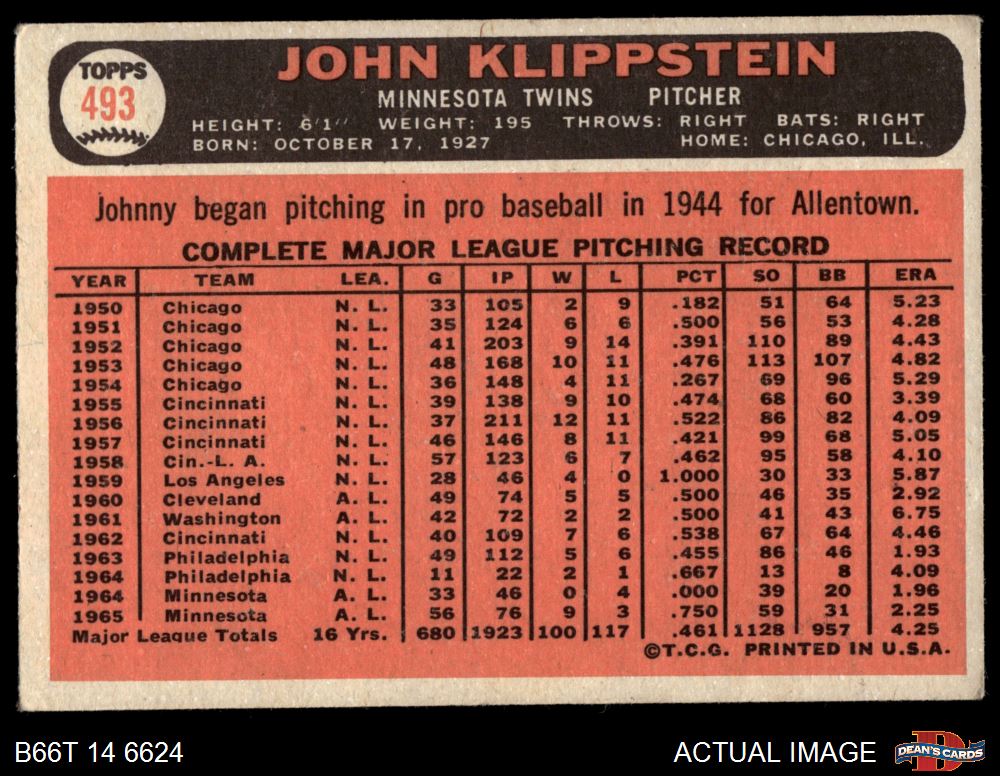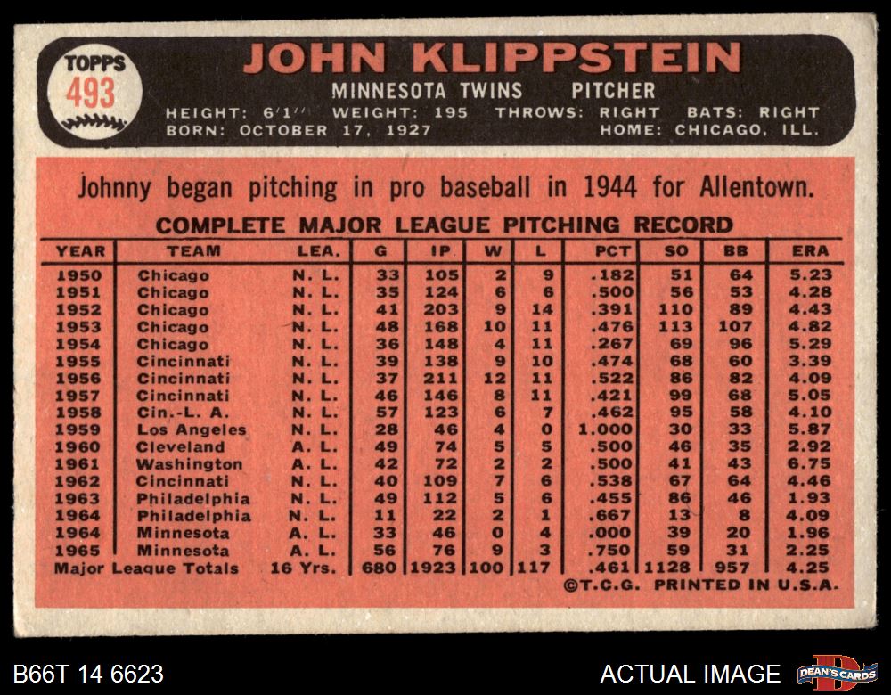 1966 Topps #493 Johnny Klippstein 3 - VG