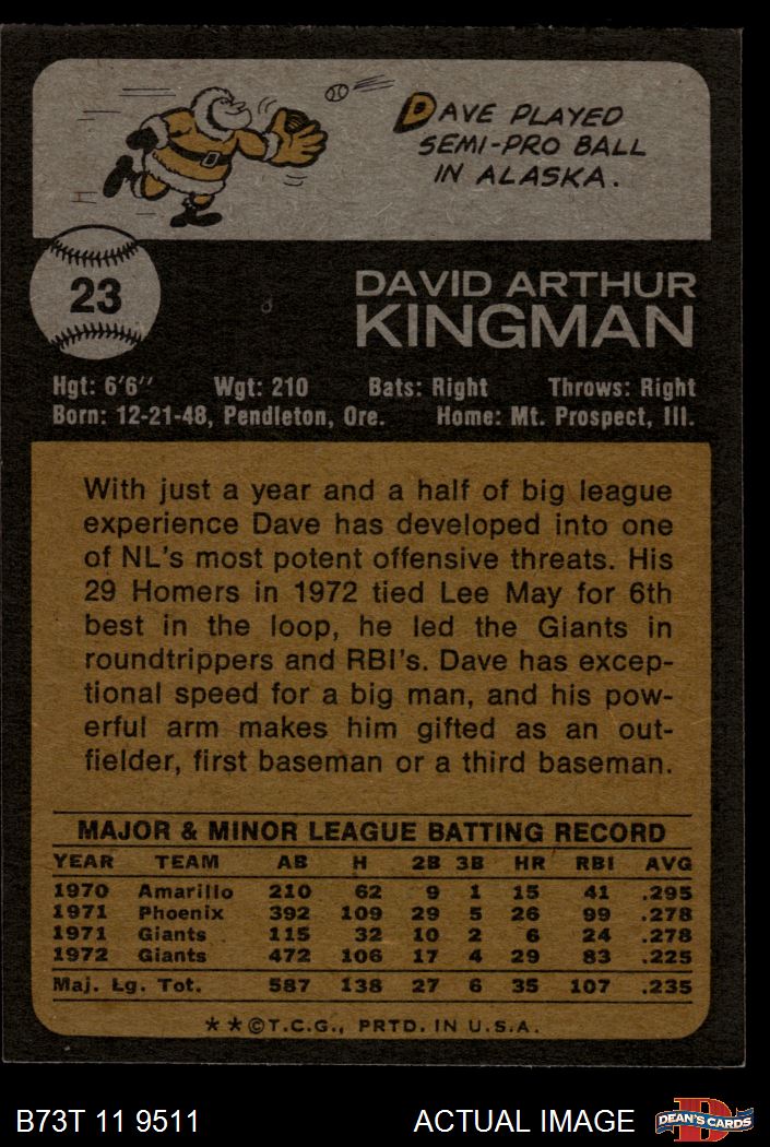 1973 Topps #23 Dave Kingman 6 - EX/MT