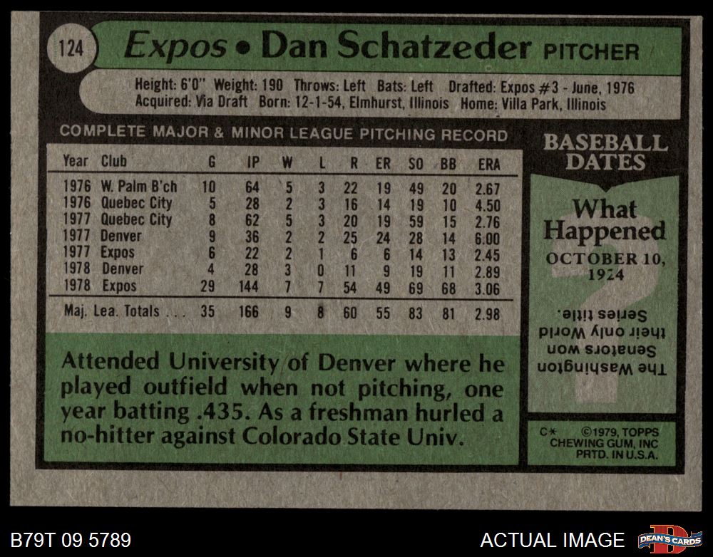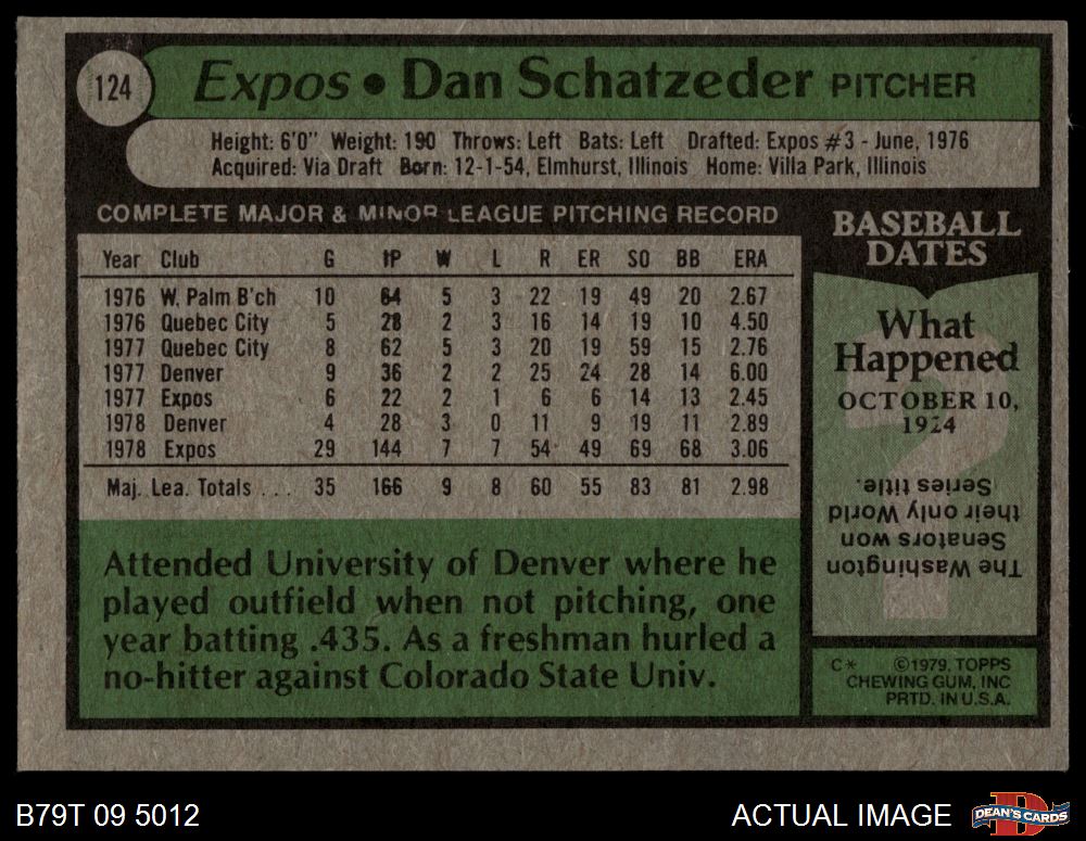 1979 Topps #124 Dan Schatzeder