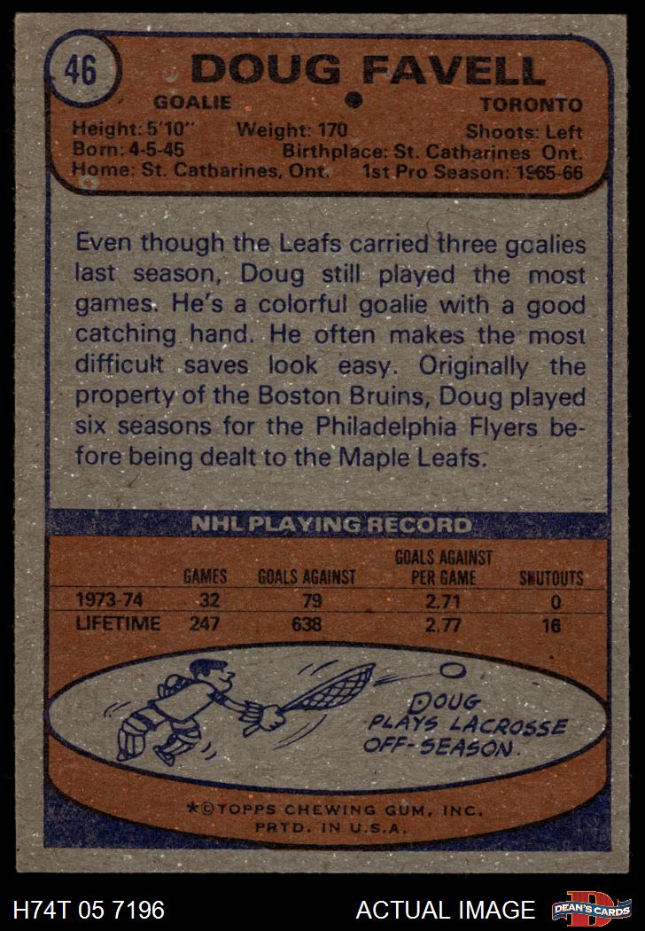 1974 Topps #46 Doug Favell