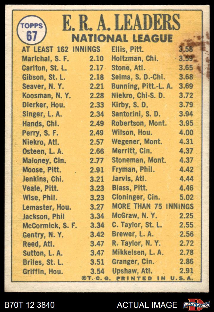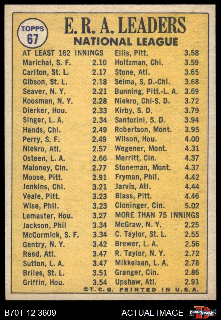 1970 Topps #67 NL ERA Leaders