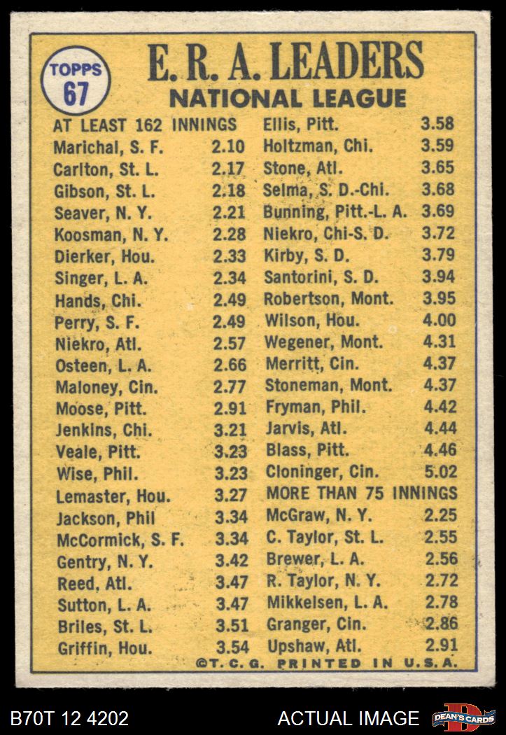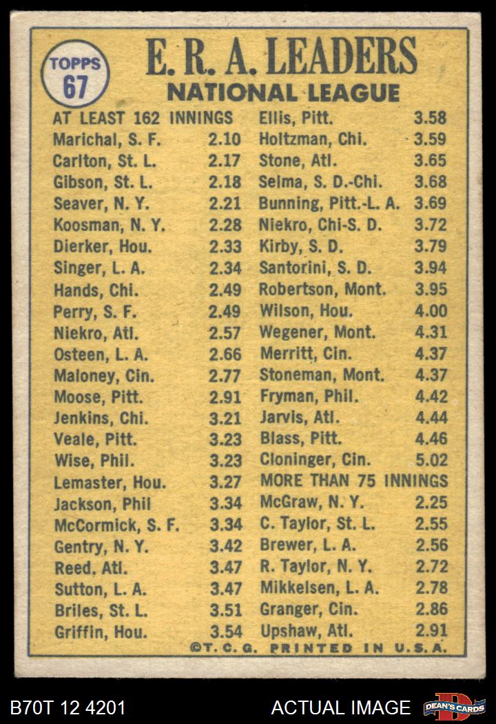 1970 Topps #67 - Steve Carlton / Bob Gibson / Juan Marichal NL ERA Leaders 5 - EX