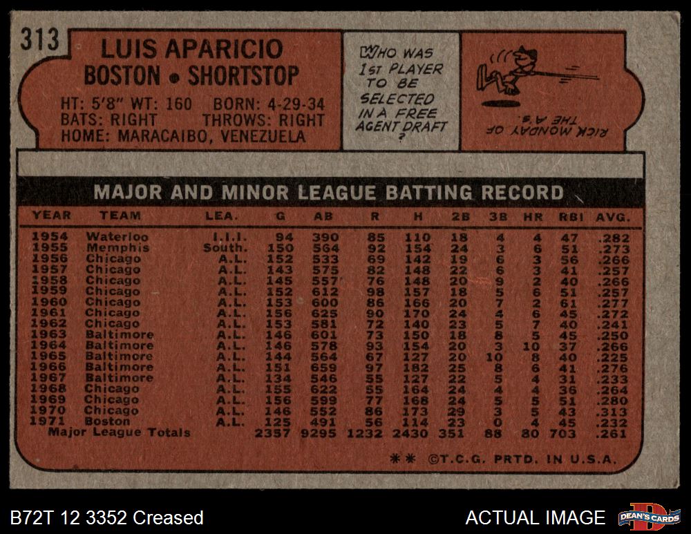1972 Topps #313 Luis Aparicio Front Thumbnail