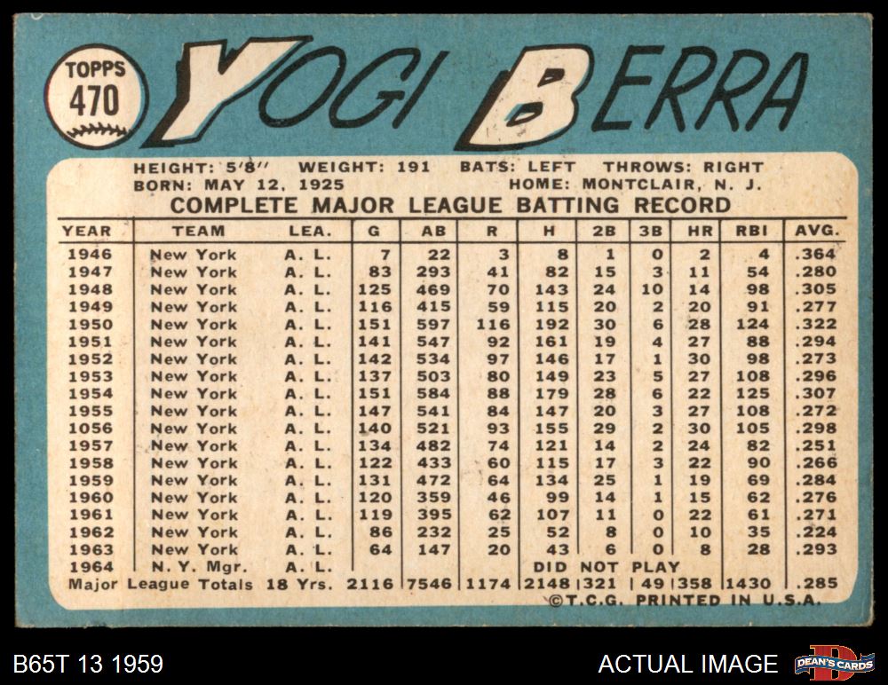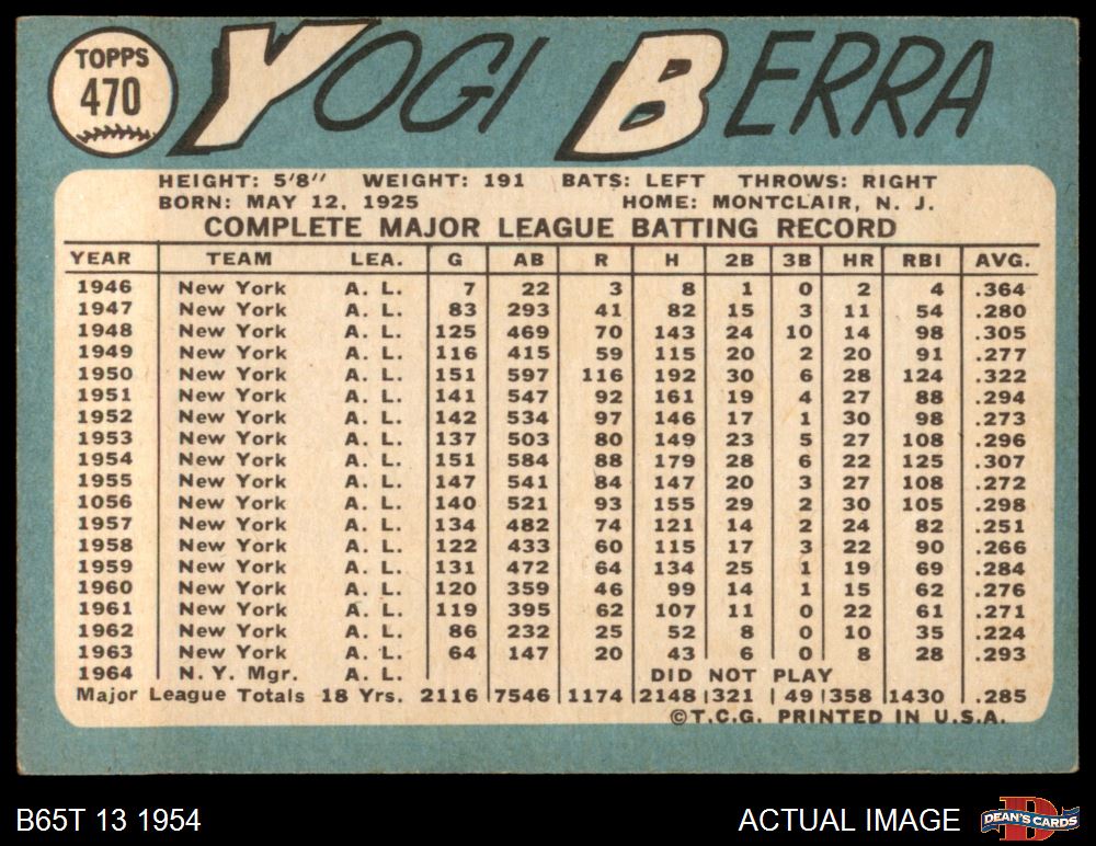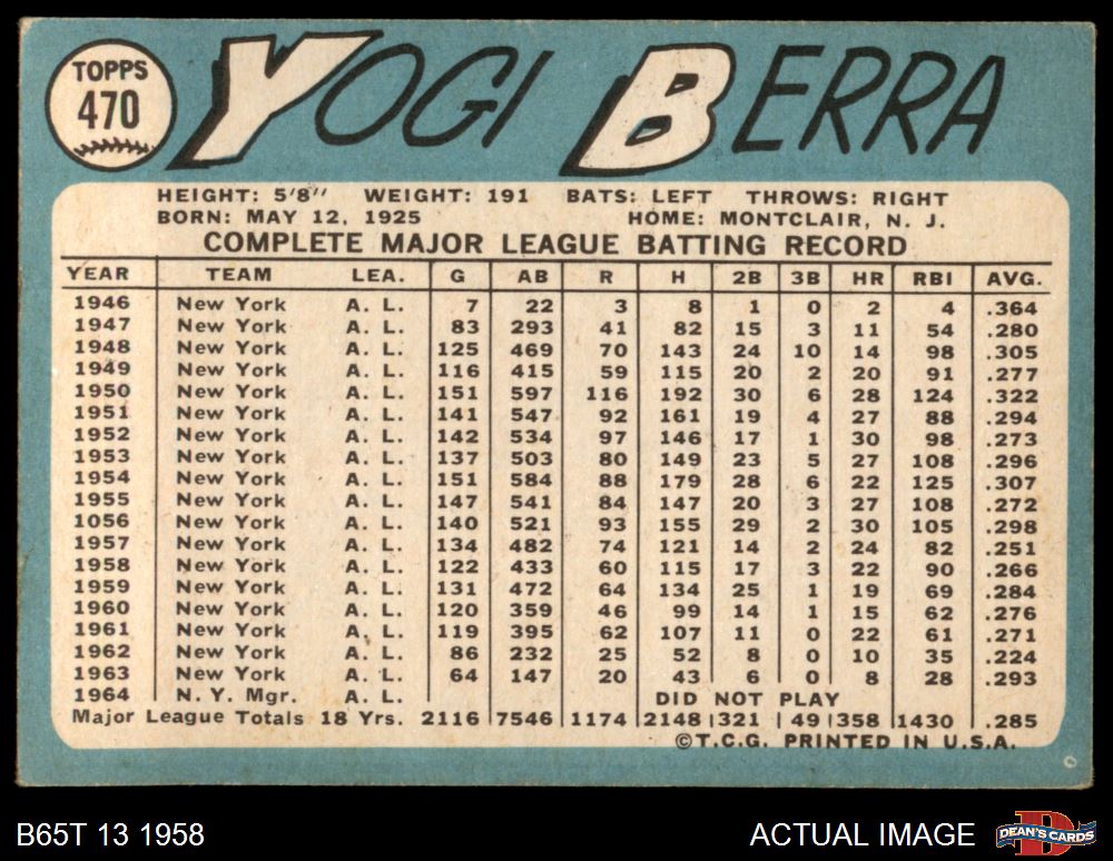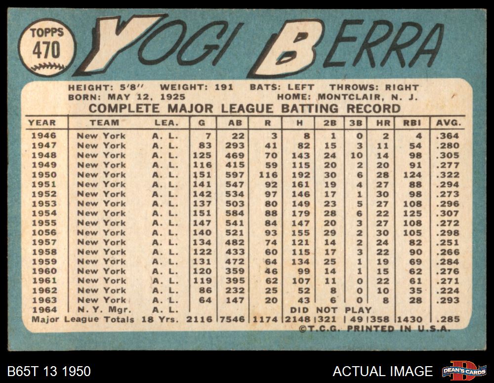 1965 Topps #470 Yogi Berra 2 - GOOD