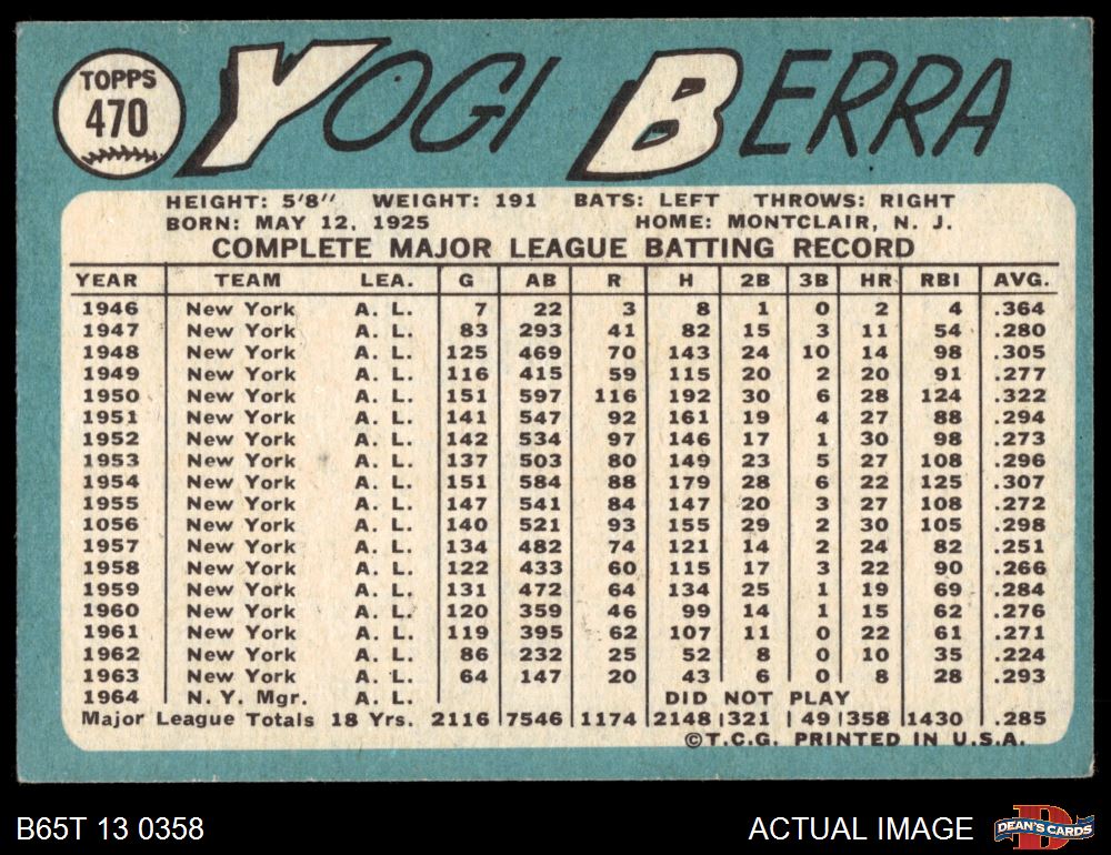 1965 Topps #470 Yogi Berra 4.5 - VG/EX+