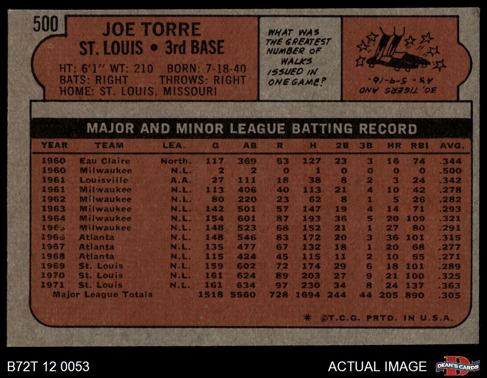 1972 Topps #500 Joe Torre 4 - VG/EX