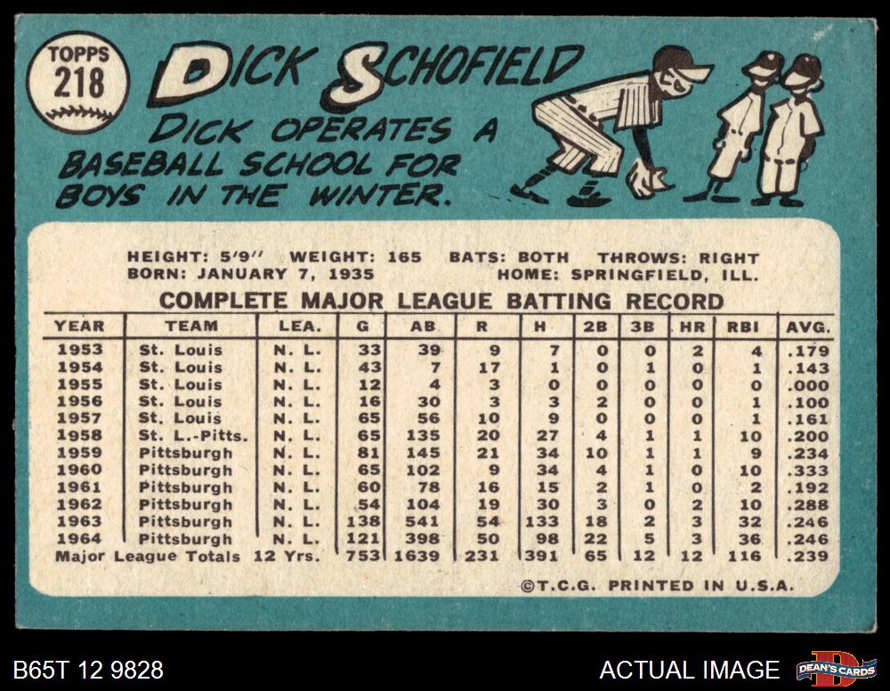 1965 Topps #218 Dick Schofield 4 - VG/EX