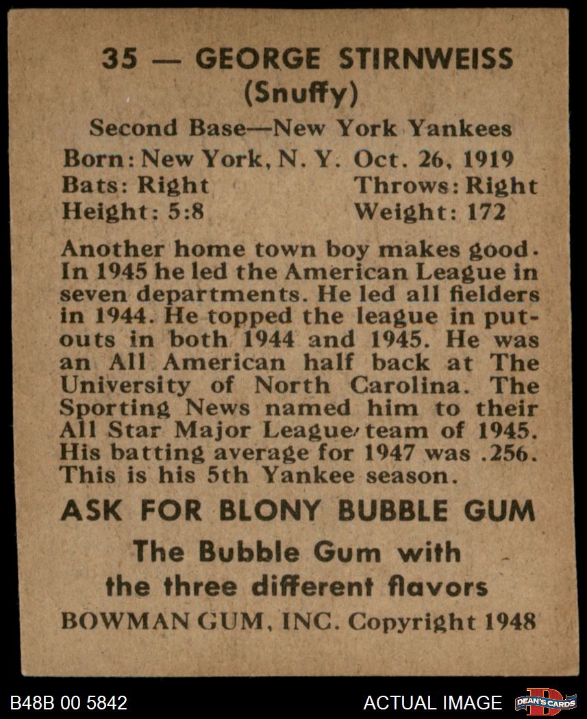 1948 Bowman #35 George Snuffy Stirnweiss Front Thumbnail