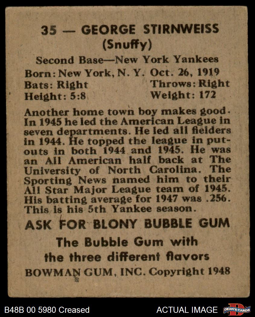 1948 Bowman #35 George Snuffy Stirnweiss 3 - VG