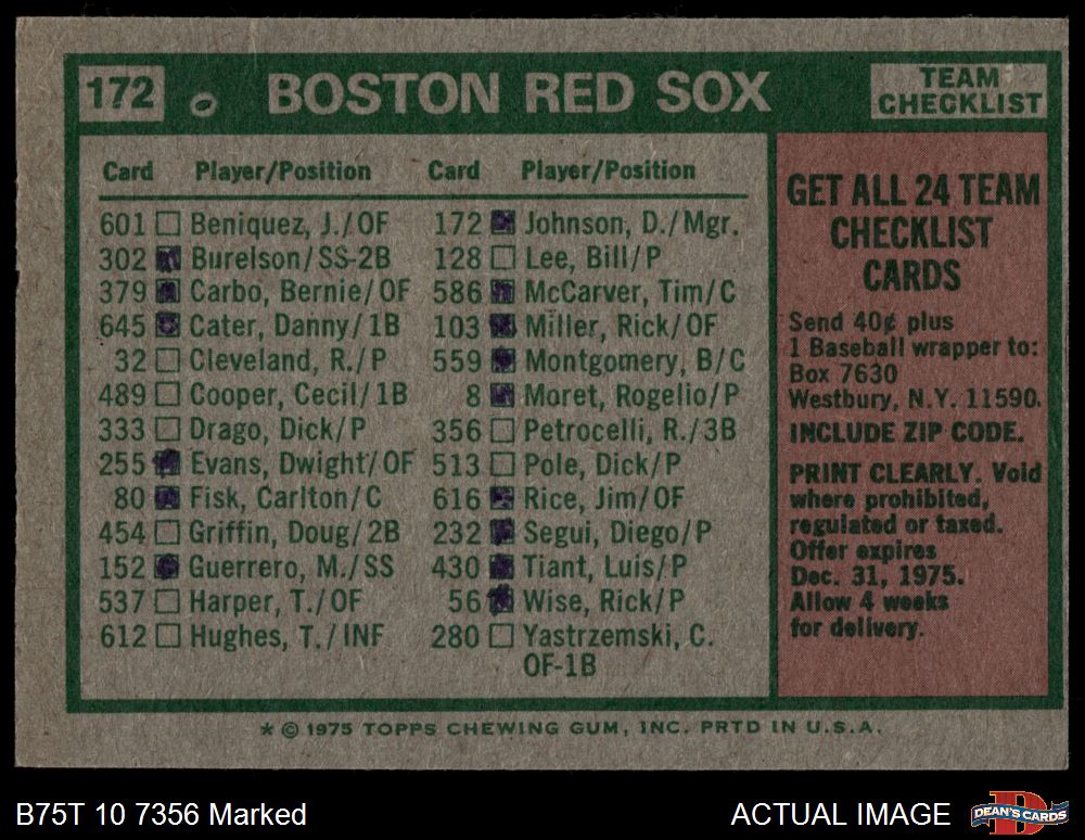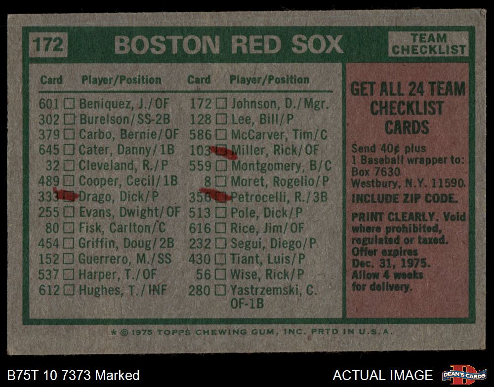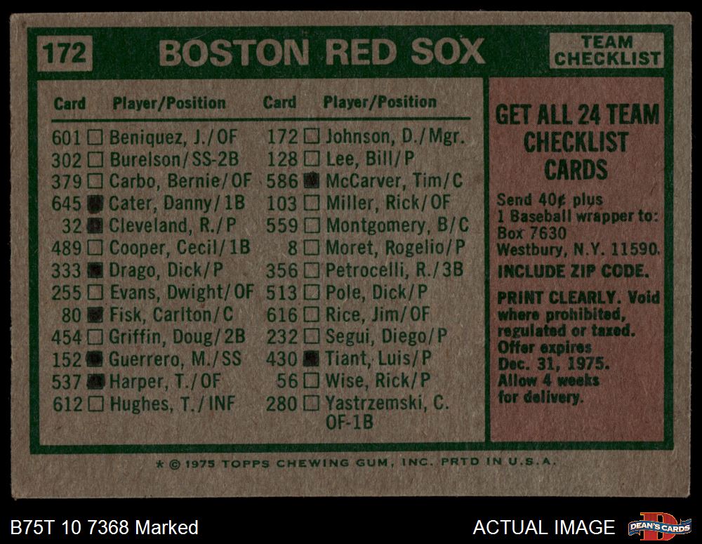 1975 Topps #172  -  Darrell Johnson Red Sox Team Checklist Front Thumbnail