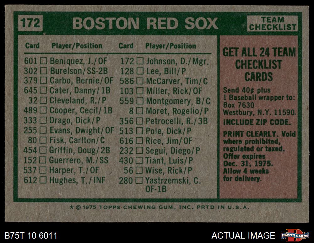 1975 Topps #172 - Darrell Johnson Red Sox Team Checklist 5.5 - EX+