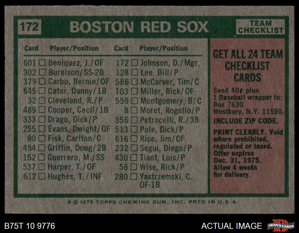 1975 Topps #172 - Darrell Johnson Red Sox Team Checklist 6 - EX/MT