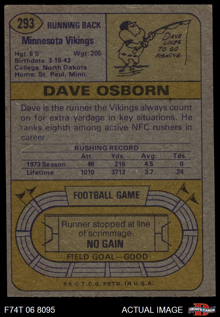 1974 Topps #293 Dave Osborn 4 - VG/EX