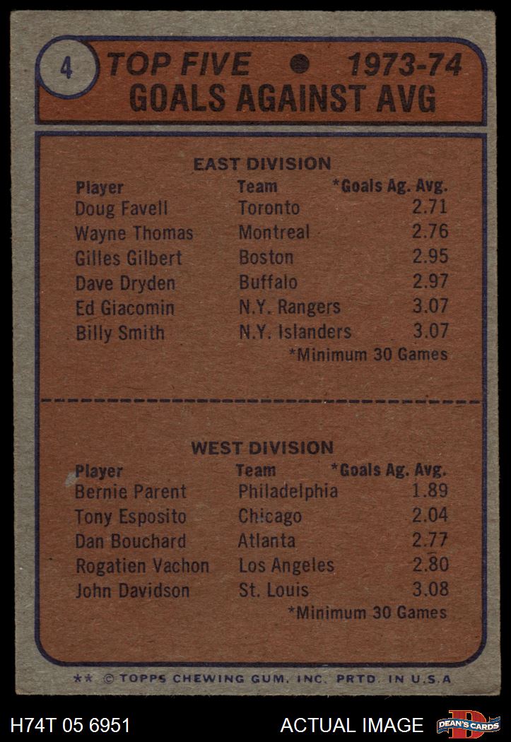 1974 Topps #4 - Doug Favell / Bernie Parent Goals Against Leaders 4 - VG/EX