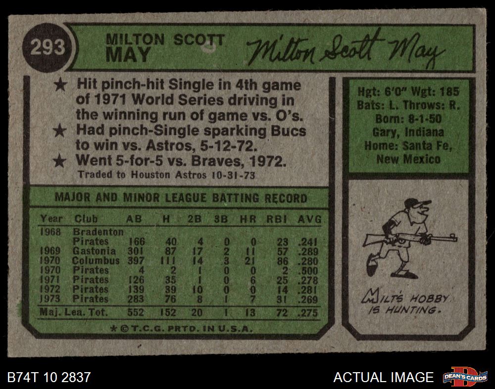 1974 Topps #293 Milt May
